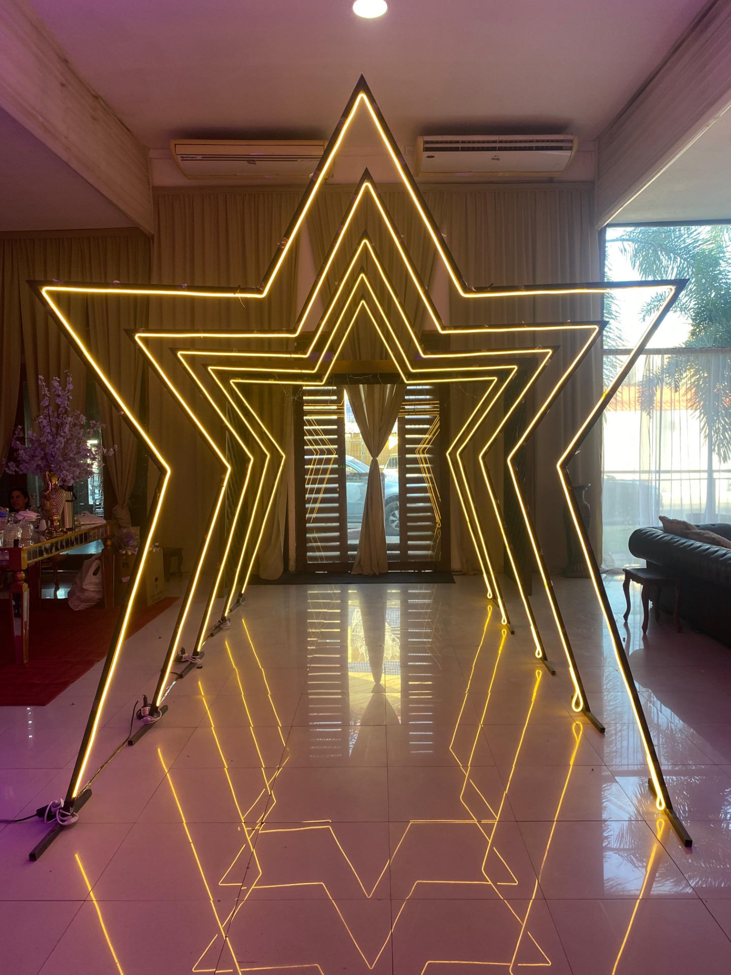 Tunel com 4m neon flex e piso espelhado