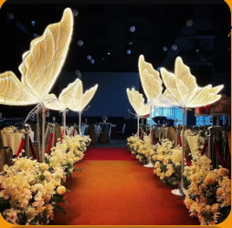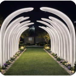 Estruturas que criam uma entrada impactante e marcante, valorizando a chegada dos convidados e reforçando a identidade do evento.