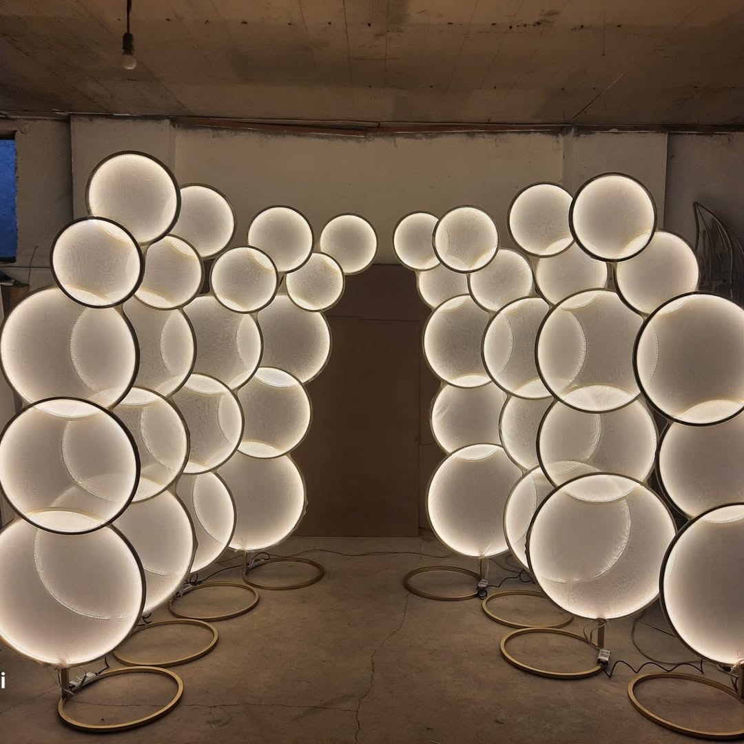 Parede em tecido 4,0x2,80 16 circulos neon flex