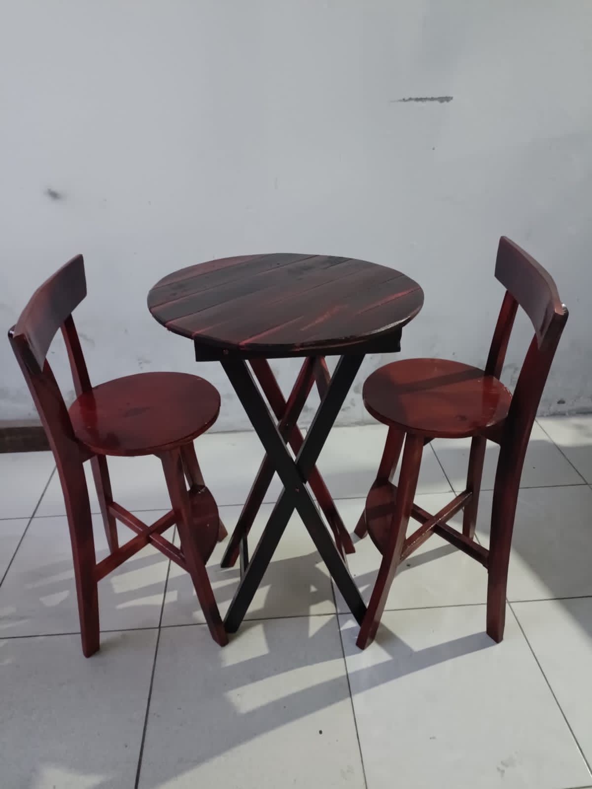 Conjunto bistrô com 01 mesa e 02 banquetas