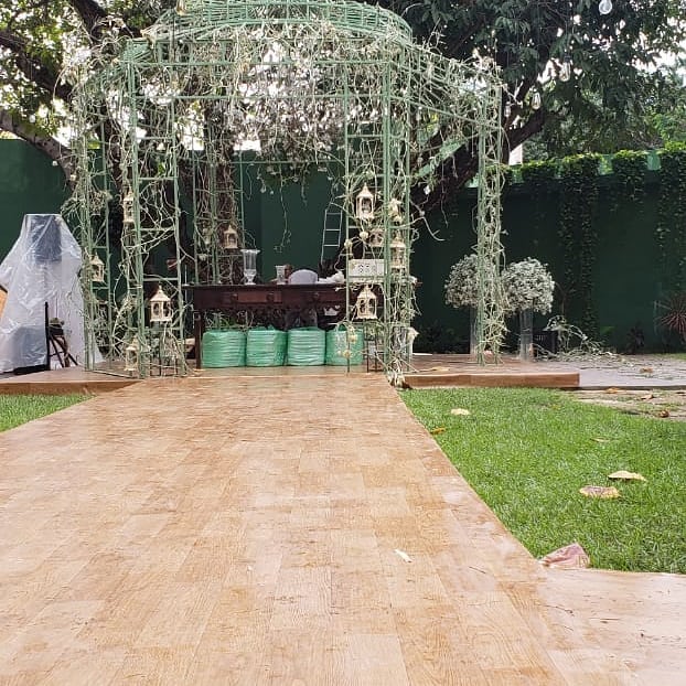 Cobertura elegante e funcional para eventos externos, garantindo conforto e proteção com ótimo acabamento visual.