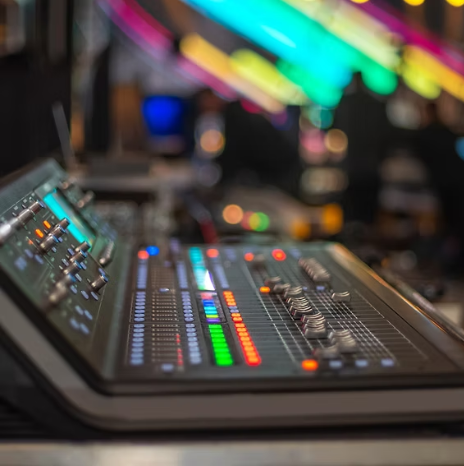 Sonorização e estrutura audiovisual para apresentações profissionais.