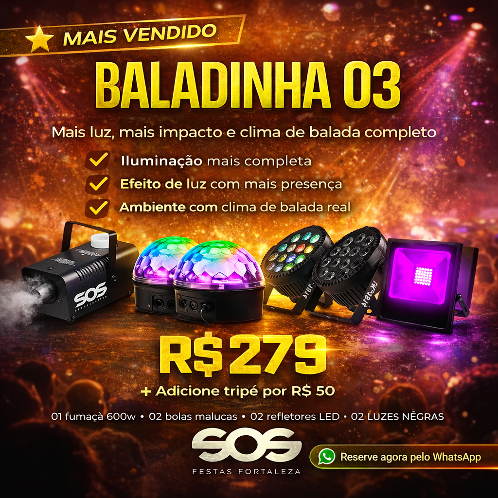 👉 Para metragens menores que 100 metros, recomenda-se avaliar a locação de pacotes maiores, pois a taxa de montagem permanece a mesma, tornando-se mais vantajoso optar por maiores quantidades de luzes.